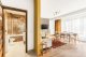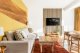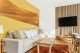 Apartament Camel to elegancka, przestronna przestrzeń, której charakter w pełni oddaje jej nazwa. W salonie uwagę przyciąga artystyczna ściana z motywem pustyni i karawany wielbłądów, subtelnie uzupełniona złotymi dodatkami. Centralnym punktem wnętrza jest duży, stylowy stół, idealny do wspólnych posiłków i spotkań w gronie rodziny lub przyjaciół. Całość tworzy harmonijne, dopracowane wnętrze o wyjątkowej atmosferze.